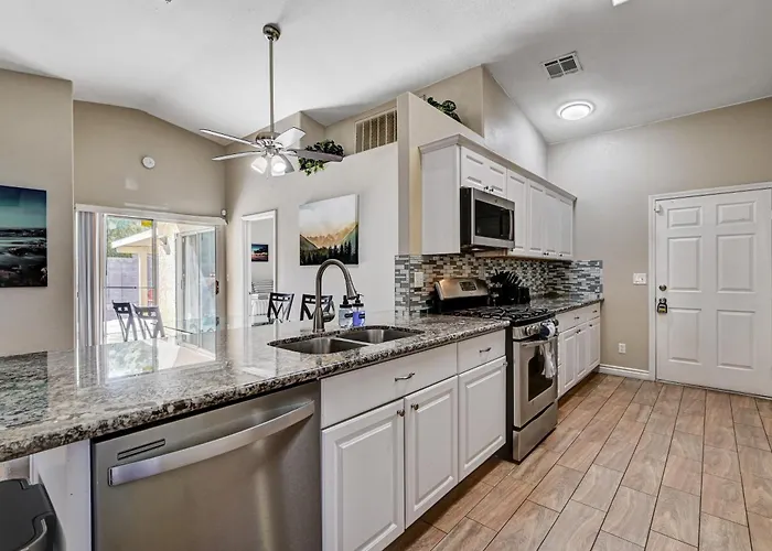 Situada en el distrito North Las Vegas, la casa de vacaciones está a 23 minutos en coche del aeropuerto internacional Mccarran de Las Vegas. Esta villa está a unos 10 minutos en coche del Cheyenne Ridge Park, y el Museo Estatal de Nevada se encuentra a 15 minutos en coche.